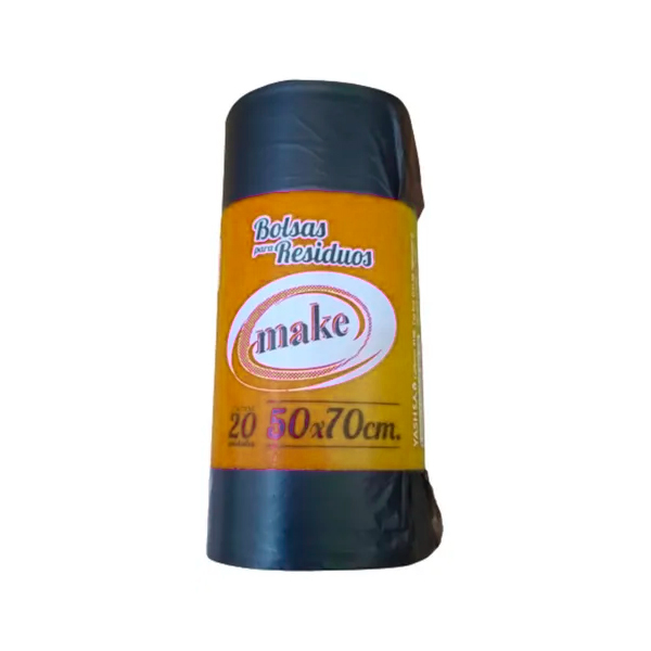 Bolsa 50X70 cm Cierra Fácil Make x 20 unidades es una bolsa resistente diseñada para la recolección y descarte de residuos en el hogar o comercios. Su práctico sistema de cierre fácil permite atar y transportar la bolsa de manera segura, evitando derrames. Ofrece buena capacidad y durabilidad para uso diario. Ideal para mantener la limpieza de forma cómoda y ordenada.