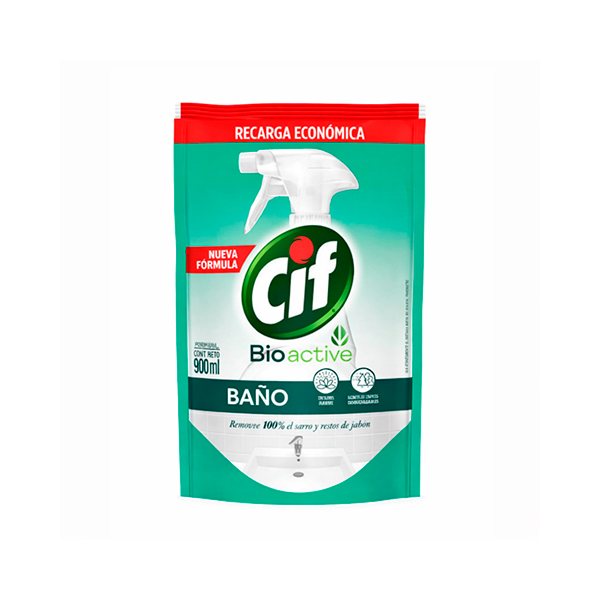 Cif Baño Bioactive 900 ml Doy Pack es un limpiador especialmente formulado para la limpieza profunda de superficies del baño. Su fórmula ayuda a remover eficazmente sarro, restos de jabón y suciedad difícil, dejando un brillo visible y un ambiente más fresco. Es ideal para lavamanos, azulejos, bañeras y sanitarios, brindando higiene y cuidado en cada uso. Su presentación doypack de recarga económica permite reutilizar el envase y ofrece mayor practicidad y rendimiento para el hogar.