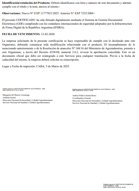 Mantener fuera del alcance de niños y animales. No ingerir, inhalar ni fumar mientras se manipula. Evitar el contacto con los ojos; en caso de contacto, lavar con mucha agua. Ante ingestión, no provocar vómito y acudir al 0800-333-0160. Usar en ambientes ventilados. Guardar en su envase original, cerrado y en un lugar fresco y seco. No reutilizar el envase.