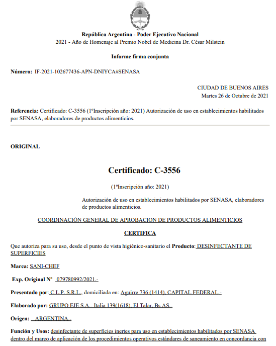 El SANI-CHEF es un desinfectante líquido a base de Clorhidrato de Polihexametilenguanidina, libre de cloro, diseñado para la desinfección de utensilios, superficies, frutas y verduras en cocinas profesionales, catering e industria alimentaria. Tiene acción comprobada contra bacterias como Staphylococcus aureus, Salmonella choleraesuis, Escherichia coli y Enterococcus faecium.
