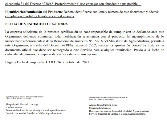 • Por inmersión: preparar una solución de 50 mL por litro de agua (1:20), sumergir frutas y verduras durante 10 minutos, luego drenar y enjuagar con agua potable.
