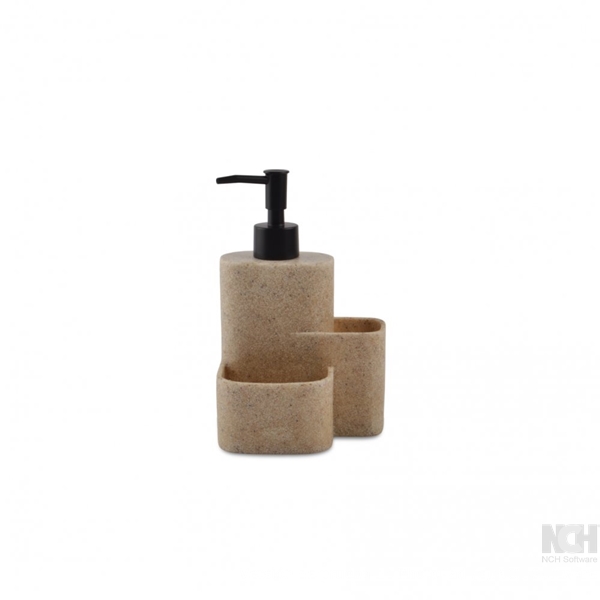 Dispenser Para Detergente Simil Piedra Beige Con Porta Esponja Y Porta Cepillo 12X9,5X18,7Cm De Resina