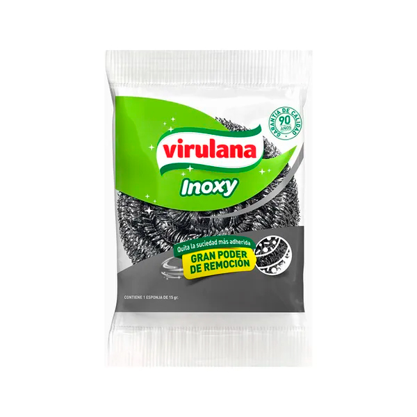 Esponja de acero inoxidable de alta resistencia, ideal para remover grasa, óxido y residuos difíciles en utensilios de cocina, parrillas y superficies metálicas. No se deforma con el uso y mantiene su eficacia por más tiempo.