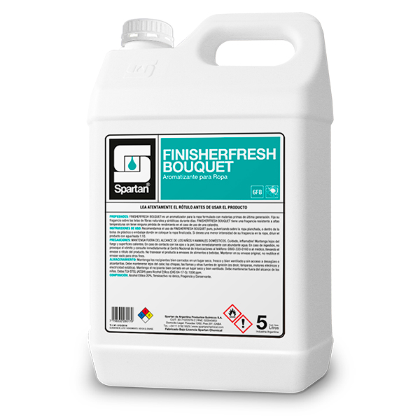FINISHERFRESH BOUQUET es un aromatizante para ropa y tejidos. Formulado con materias primas de última generación que fijan la fragancia sobre los tejidos, tanto de fibras naturales como sintéticas; dejando la ropa perfumada por mucho más tiempo. Posee una fragancia resistente a altas temperaturas, no habiendo