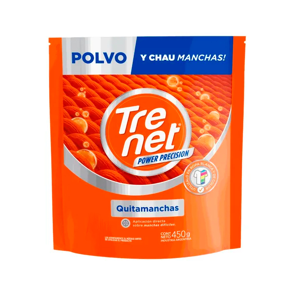 Prelavado Trenet Polvo 450 g Doy Pack es un quitamanchas en polvo diseñado para tratar la ropa antes del lavado. Ayuda a remover manchas difíciles como grasa, comida y suciedad profunda, cuidando las telas. Puede utilizarse en ropa blanca y de color. Su presentación doypack brinda practicidad y mejor rendimiento.