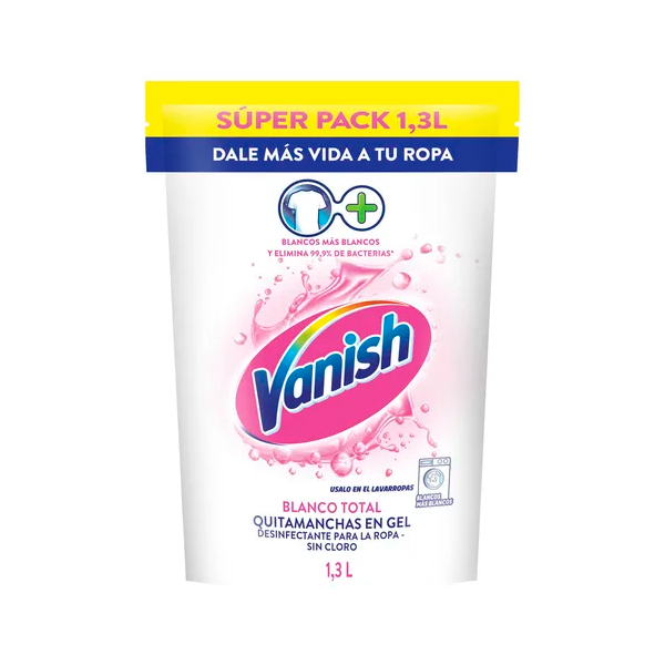 Vanish White Blanco 1.3 L es un quitamanchas líquido formulado para potenciar el blanco de las prendas y eliminar manchas difíciles sin dañar las fibras. Su tecnología blanqueadora actúa profundamente, removiendo suciedad incrustada, amarilleo y opacidad acumulada por el uso. Es apto para ropa blanca de algodón, poliéster y mezclas, ofreciendo resultados visibles desde los primeros lavados. El formato de 1.3 litros es ideal para uso frecuente, tanto en lavados manuales como en lavarropas. Proporciona un acabado luminoso y uniforme, extendiendo la vida útil de las prendas.