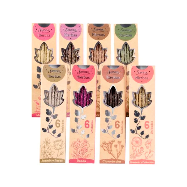 Sahumerios artesanales con fragancias herbales variadas, pensados para aromatizar y crear ambientes relajantes. Ofrecen una combustión pareja y un aroma persistente ideal para el hogar o espacios de meditación.