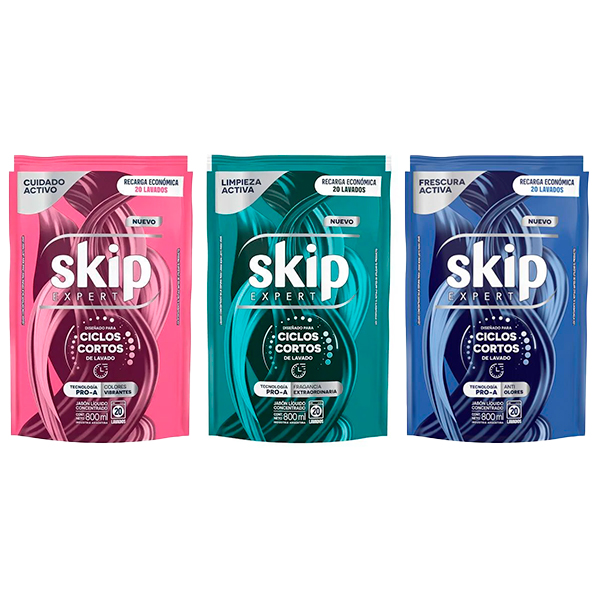 Skip Líquido 800 ml Ciclos Cortos Doy Pack es un detergente líquido especialmente desarrollado para lavarropas con programas de lavado rápido. Su fórmula actúa eficazmente incluso en ciclos cortos, removiendo suciedad y manchas habituales en menos tiempo. Se disuelve rápidamente, cuida las fibras y ayuda a mantener los colores y blancos. Su presentación doypack es práctica para recargar y ofrece un excelente rendimiento para el uso diario.