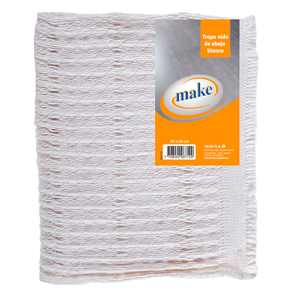Trapo de Piso Nido de Abeja Blanco Make 50 x 56 cm es un paño diseñado para la limpieza y secado eficiente de pisos. Su tejido tipo nido de abeja ofrece alta absorción y facilita la remoción de agua y suciedad sin dejar residuos. Es ideal para uso en el hogar, especialmente en cerámicos, mosaicos y superficies lavables. Resistente y durable, brinda un excelente rendimiento en tareas de limpieza diaria.