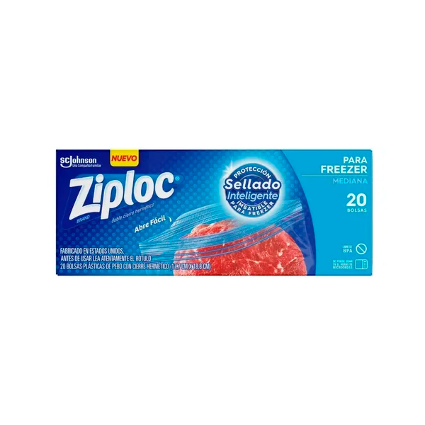 Ziploc para Freezer 17,7 x 18,8 cm x 20 unidades son bolsas herméticas especialmente diseñadas para conservar alimentos en el congelador. Su material resistente ayuda a proteger contra quemaduras por frío, manteniendo la frescura y el sabor por más tiempo. Cuentan con cierre seguro que evita derrames y facilita el almacenamiento. Ideales para porciones pequeñas, viandas y organización diaria en el freezer.